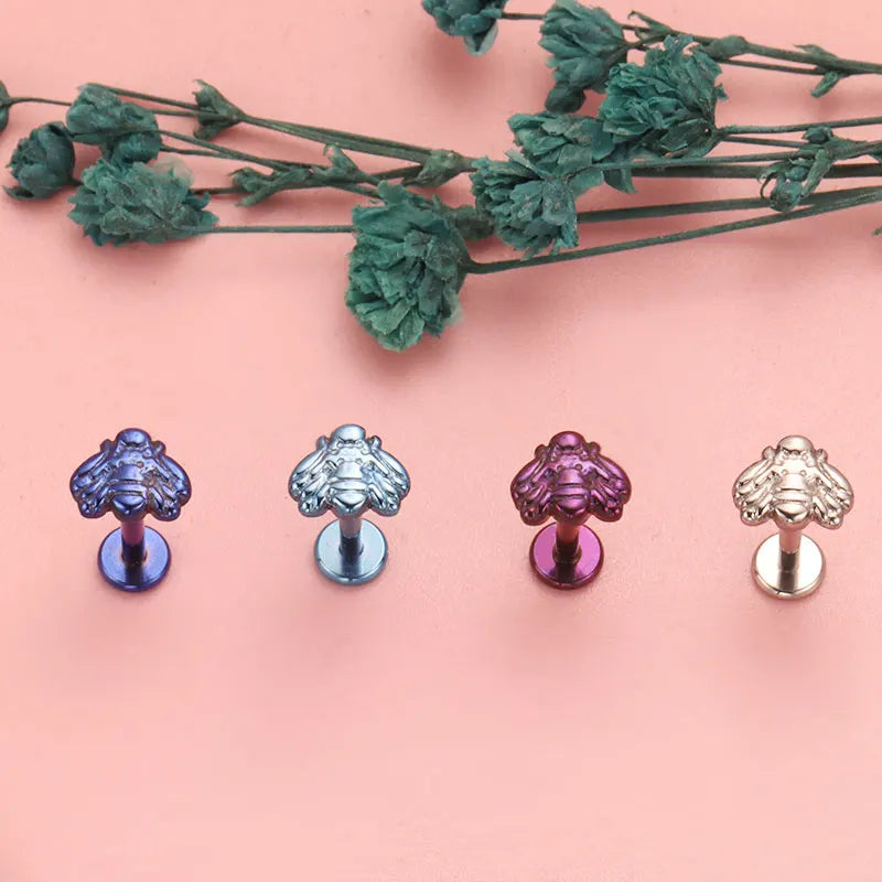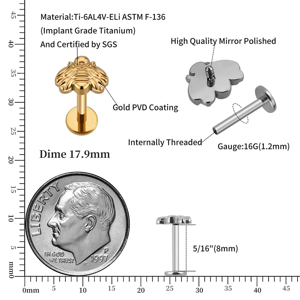 Labret stud with bee 16 gauge titanium internally threaded