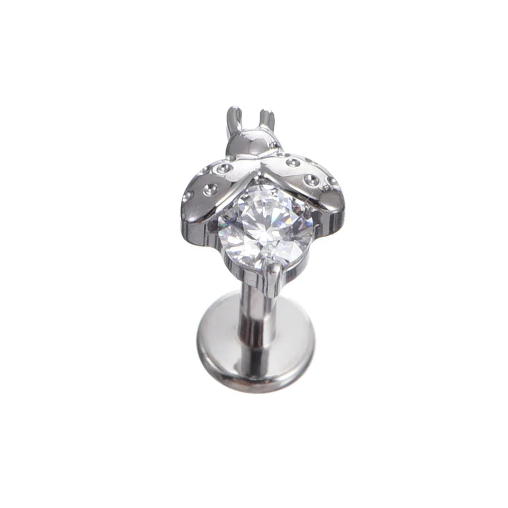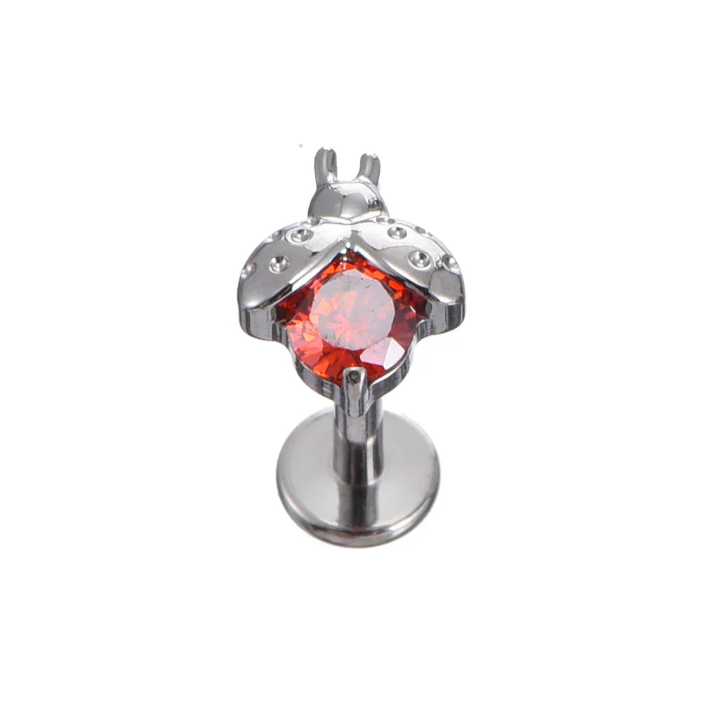 Ladybug nose stud with clear or red crystal ladybug stud earrings titanium piercing stud cute pretty and unique