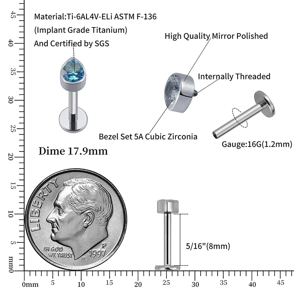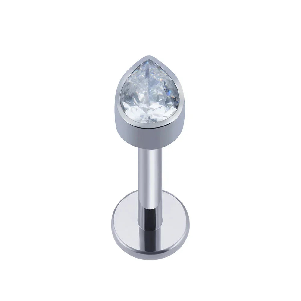 Medusa diamond piercing with clear blue green black diamond CZ teardrop titanium stud