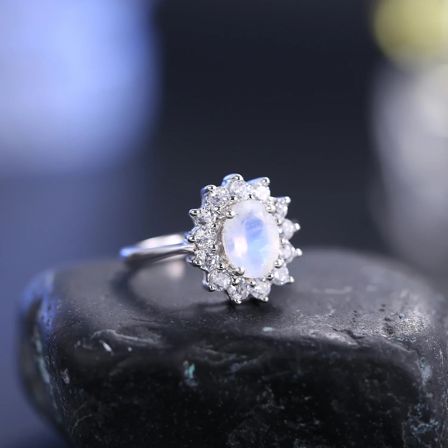 Moonstone and diamond cz ring (Mini) with an oval moonstone and cz promise ring for her