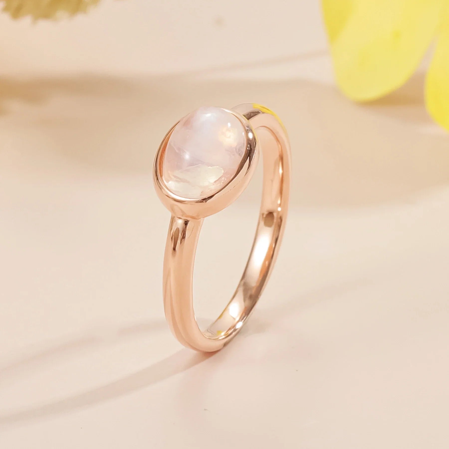 Moonstone bezel ring with an oval moonstone rose gold ring mother's ring