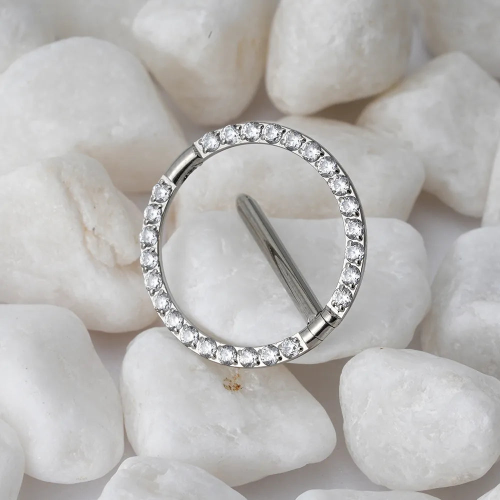 Nipple clicker ring gold and silver titanium 14G with CZ 1 piece