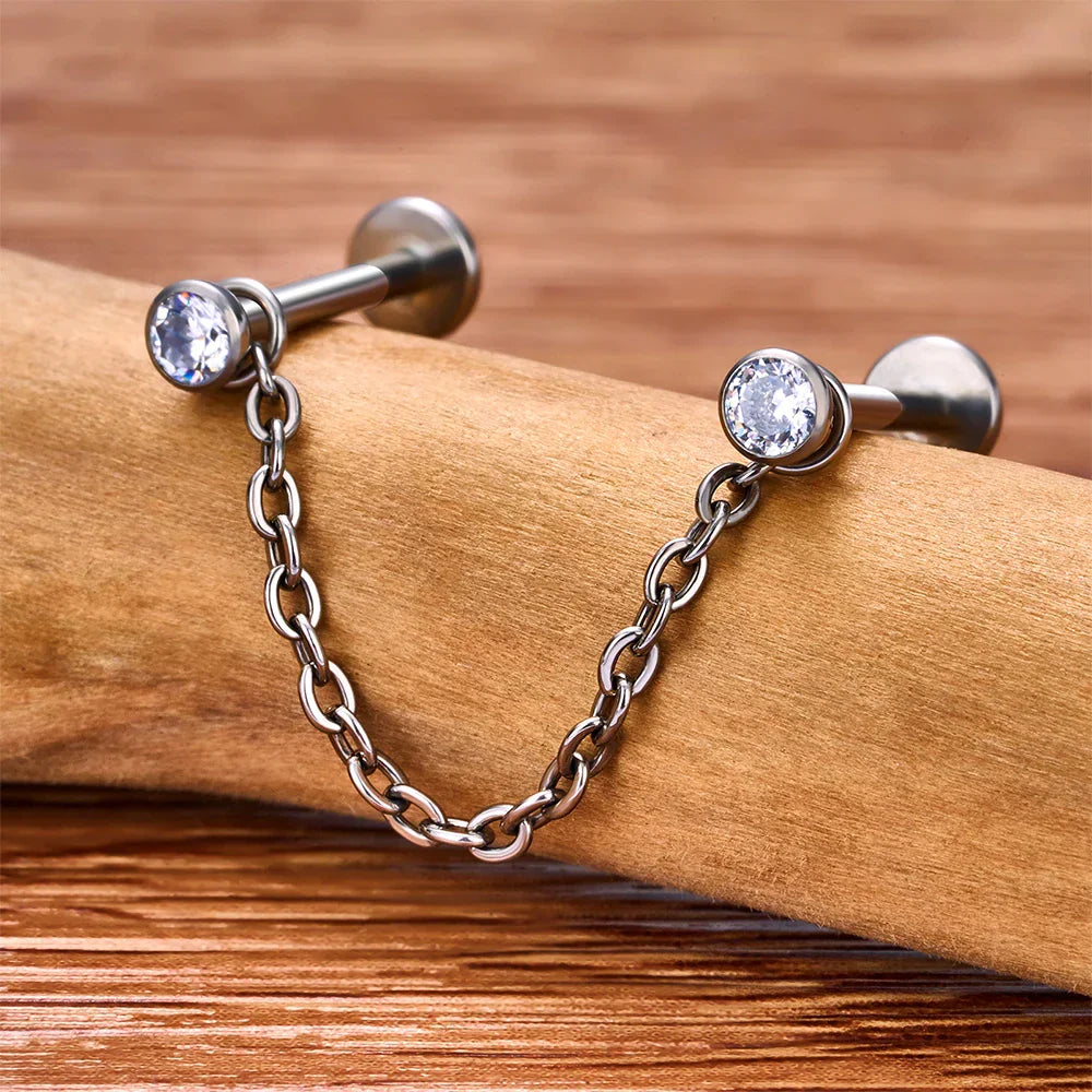 Nose chain piercing nostril piercing with chain nasallang piercing chain titanium nose stud