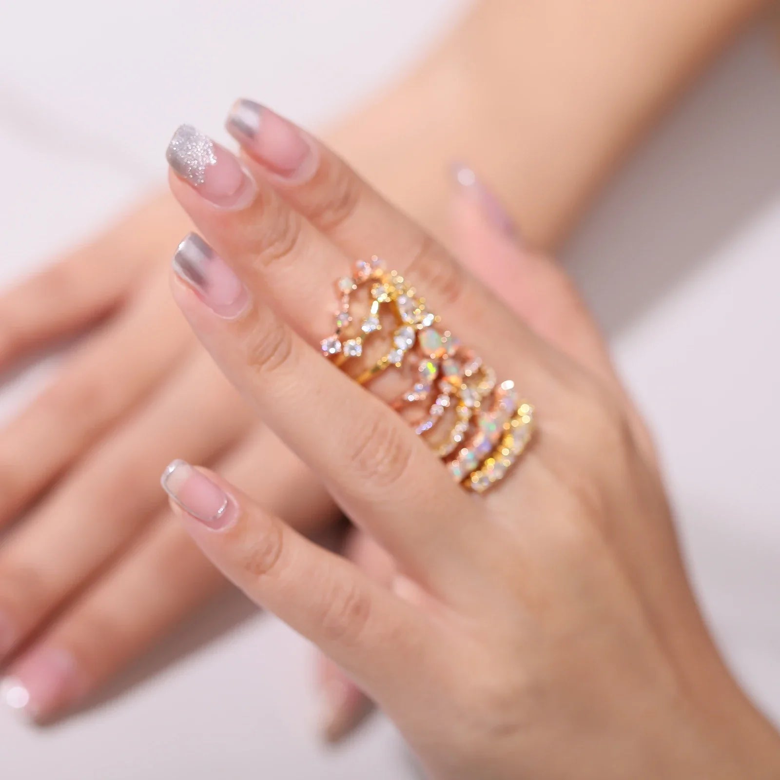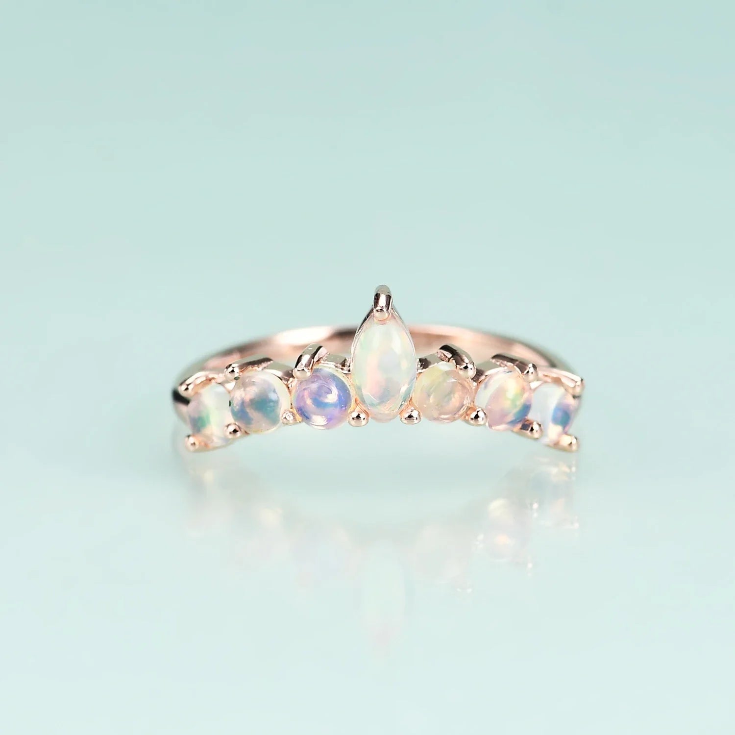 Opal wedding ring in a crown shape semi-eternity opal ring for women for men