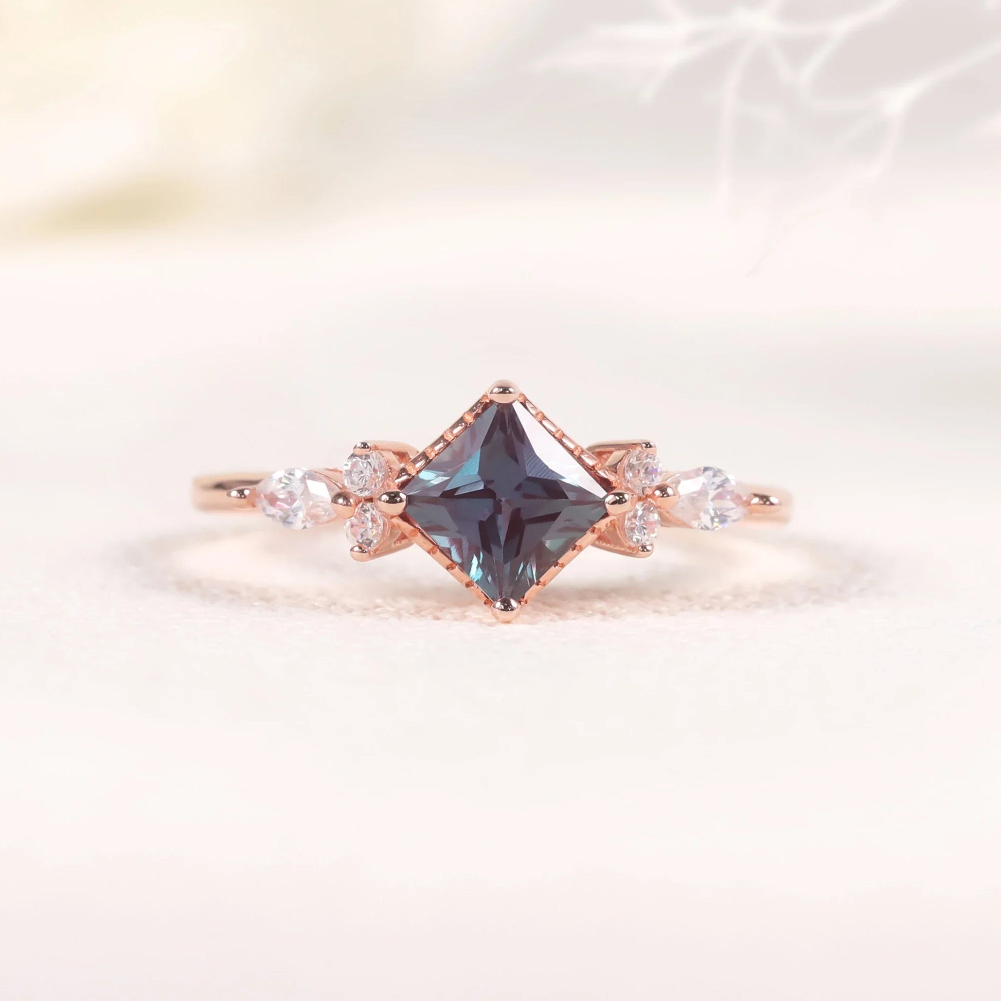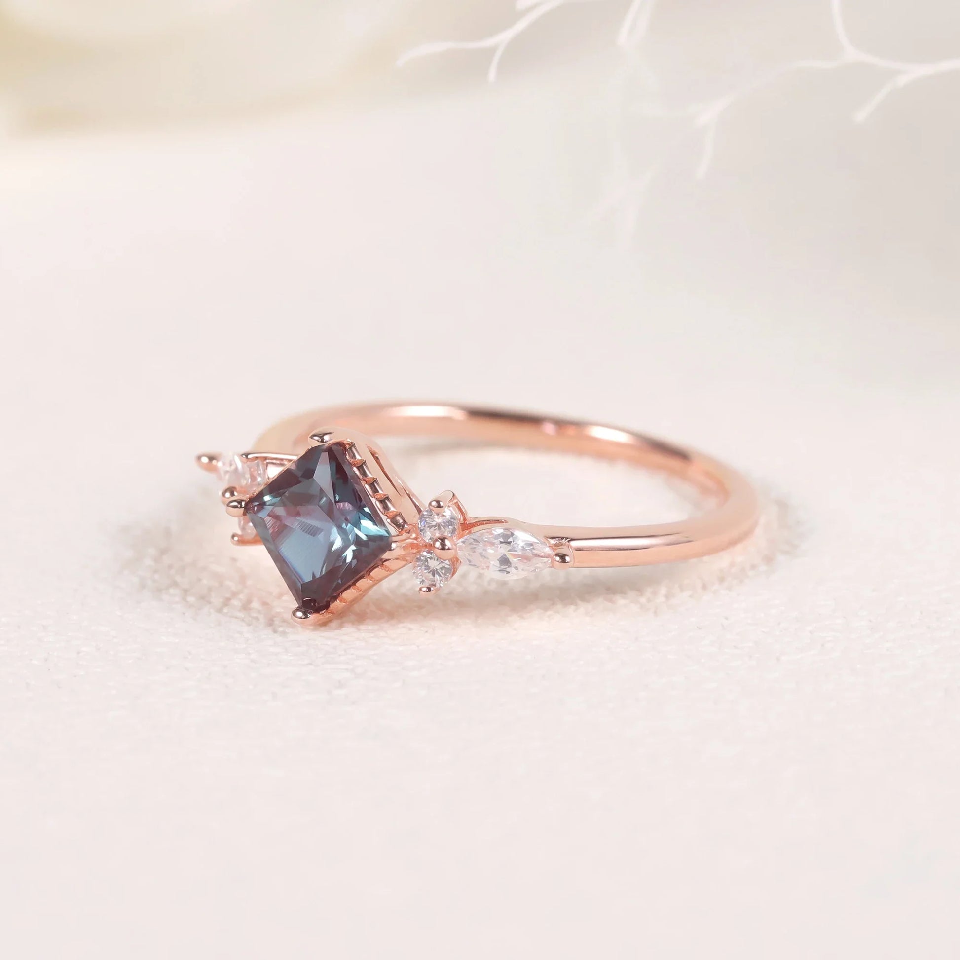 Rose gold alexandrite ring color changing