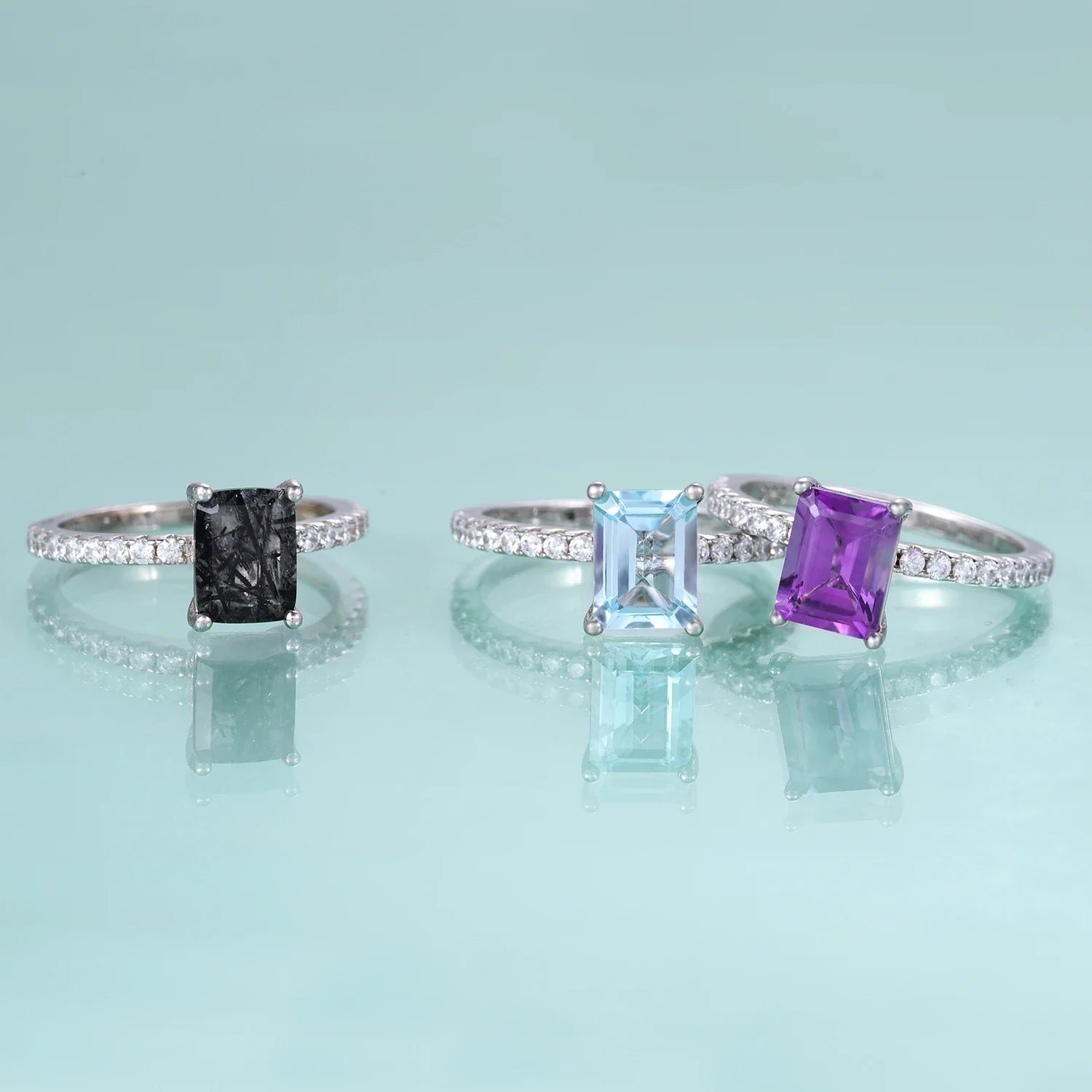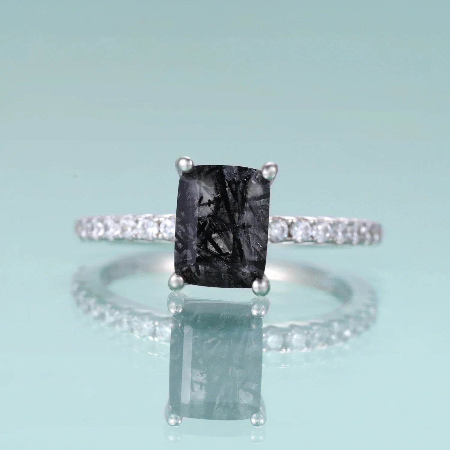 Rutilated quartz ring sterling silver emerald cut