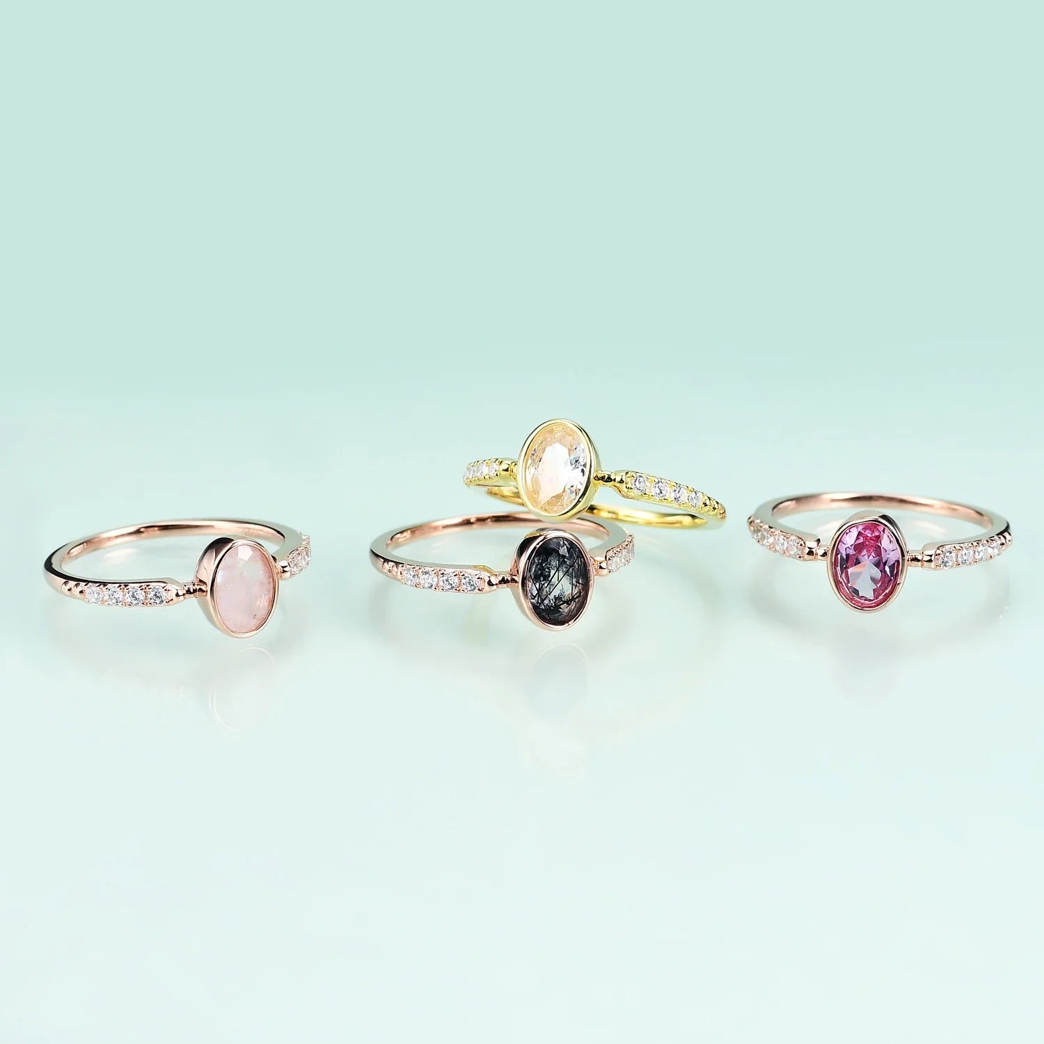 Rutile quartz engagement ring oval cut bezel set dainty and simple
