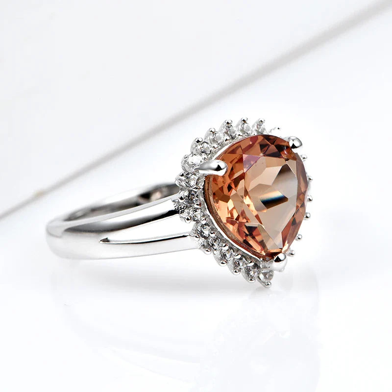 Silver zultanite ring with a pear-shaped zultanite and clear cz stones