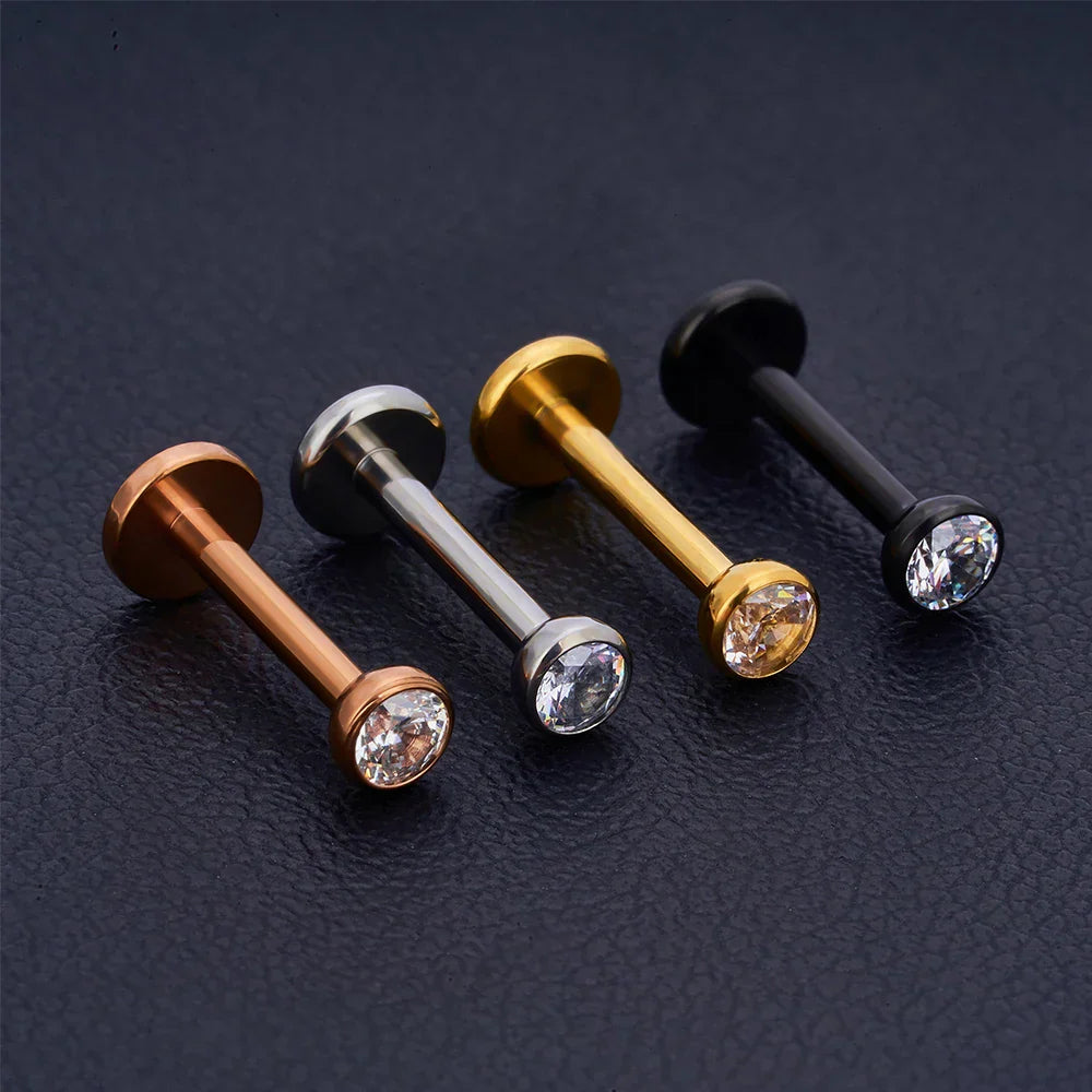 Small monroe piercing with a clear diamond gold monroe piercing titanium labret stud internally threaded