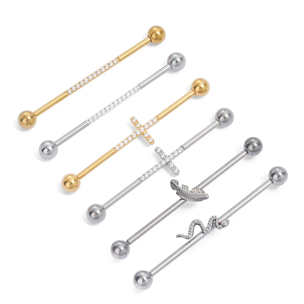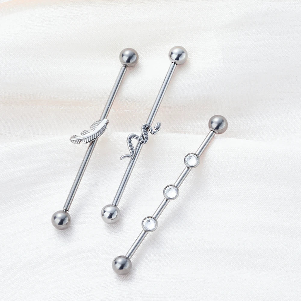 Snake industrial piercing 14G 38mm titanium industrial barbell piercing silver