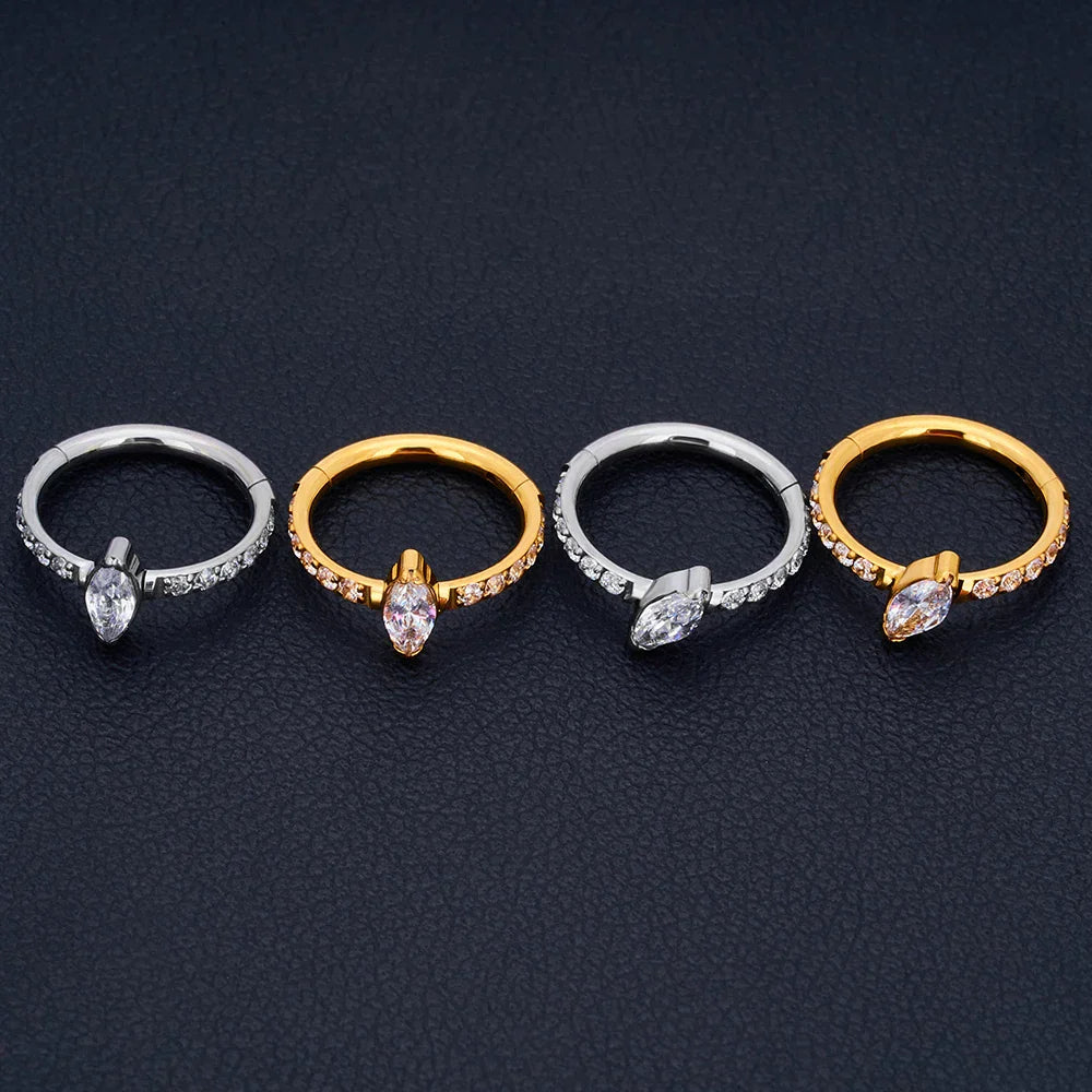 Snug piercing ring 16G titanium with marquise CZ stones hinged segment clicker