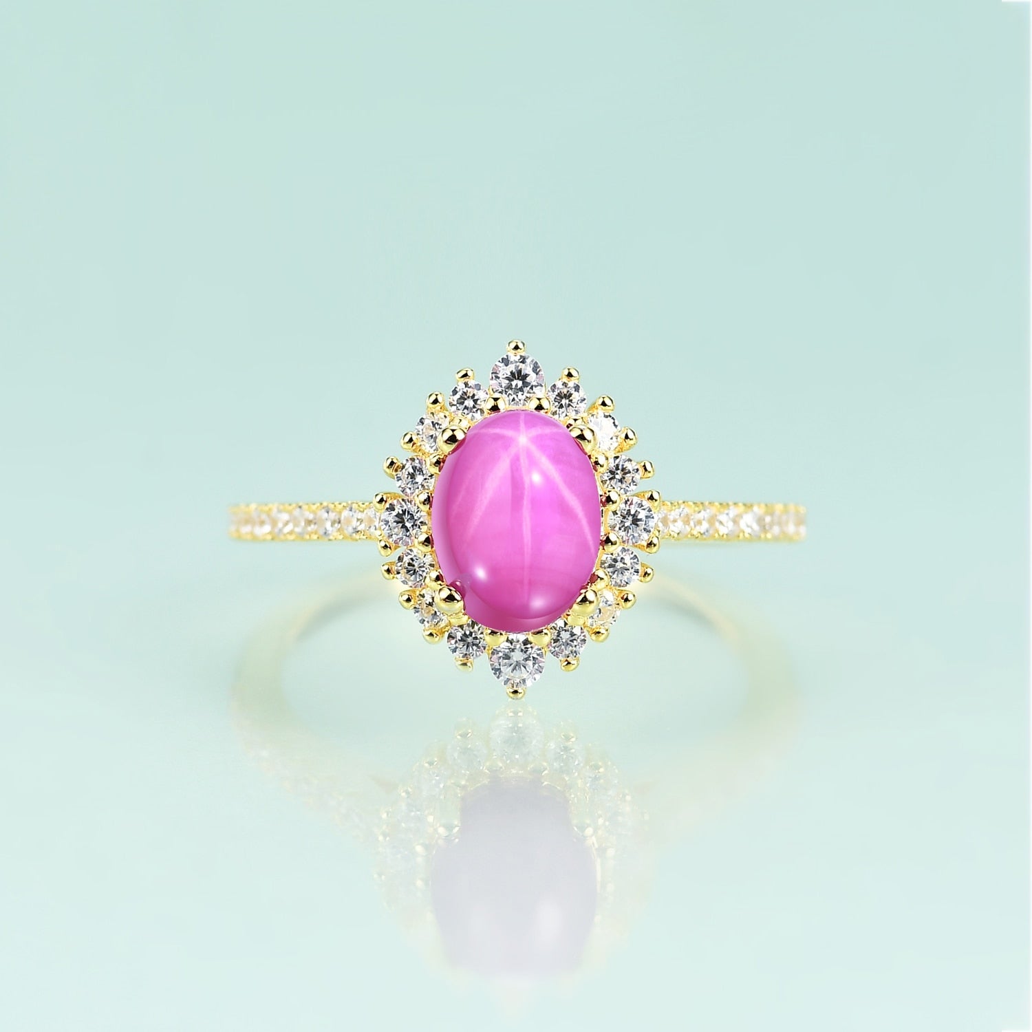 Star ruby ring 14K gold Princess Diana replica engagement ring