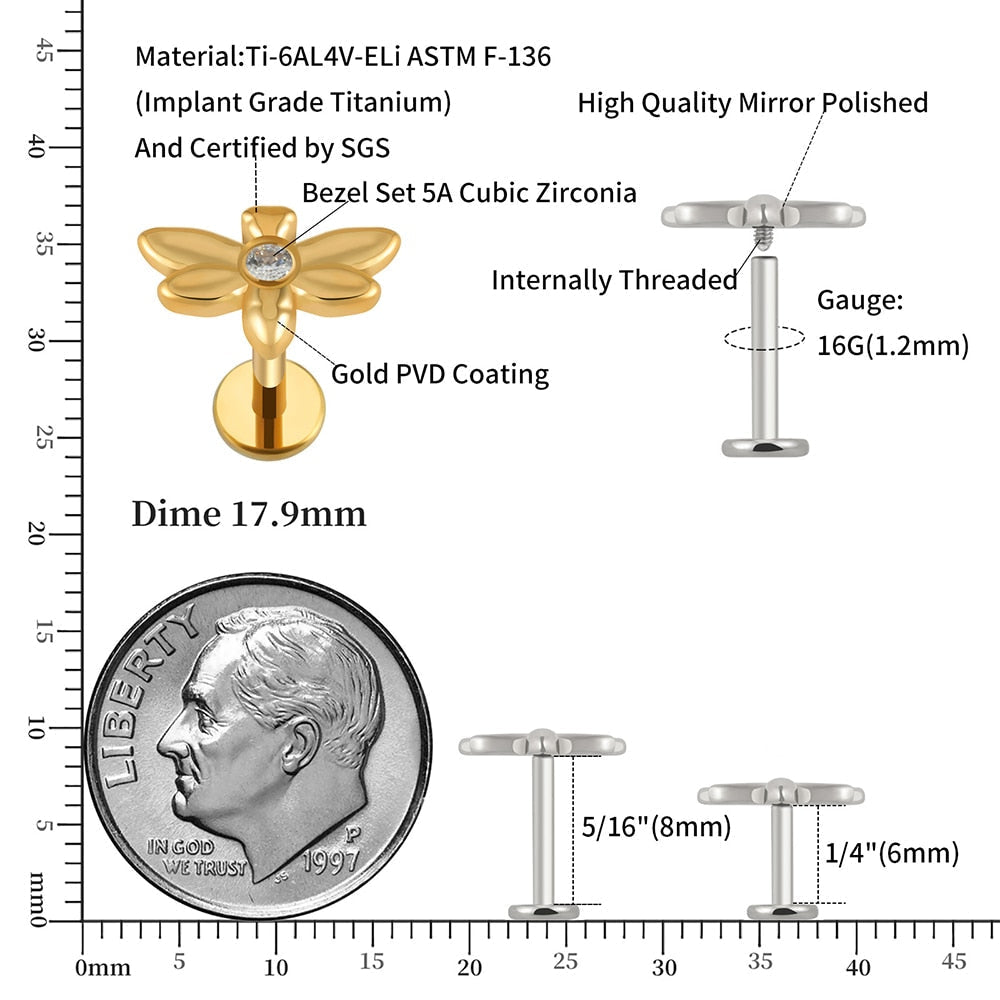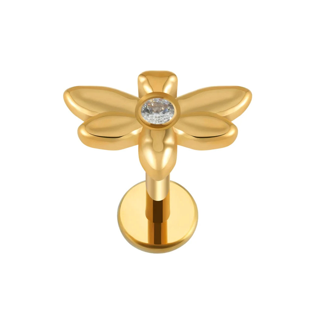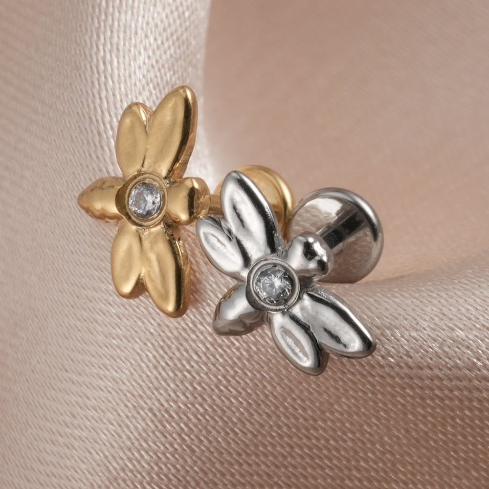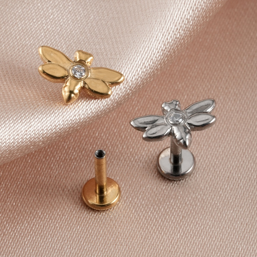 Stud helix piercing with a dragonfly and CZ titanium 16G