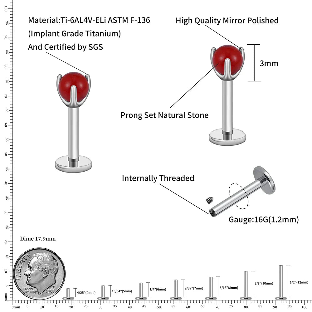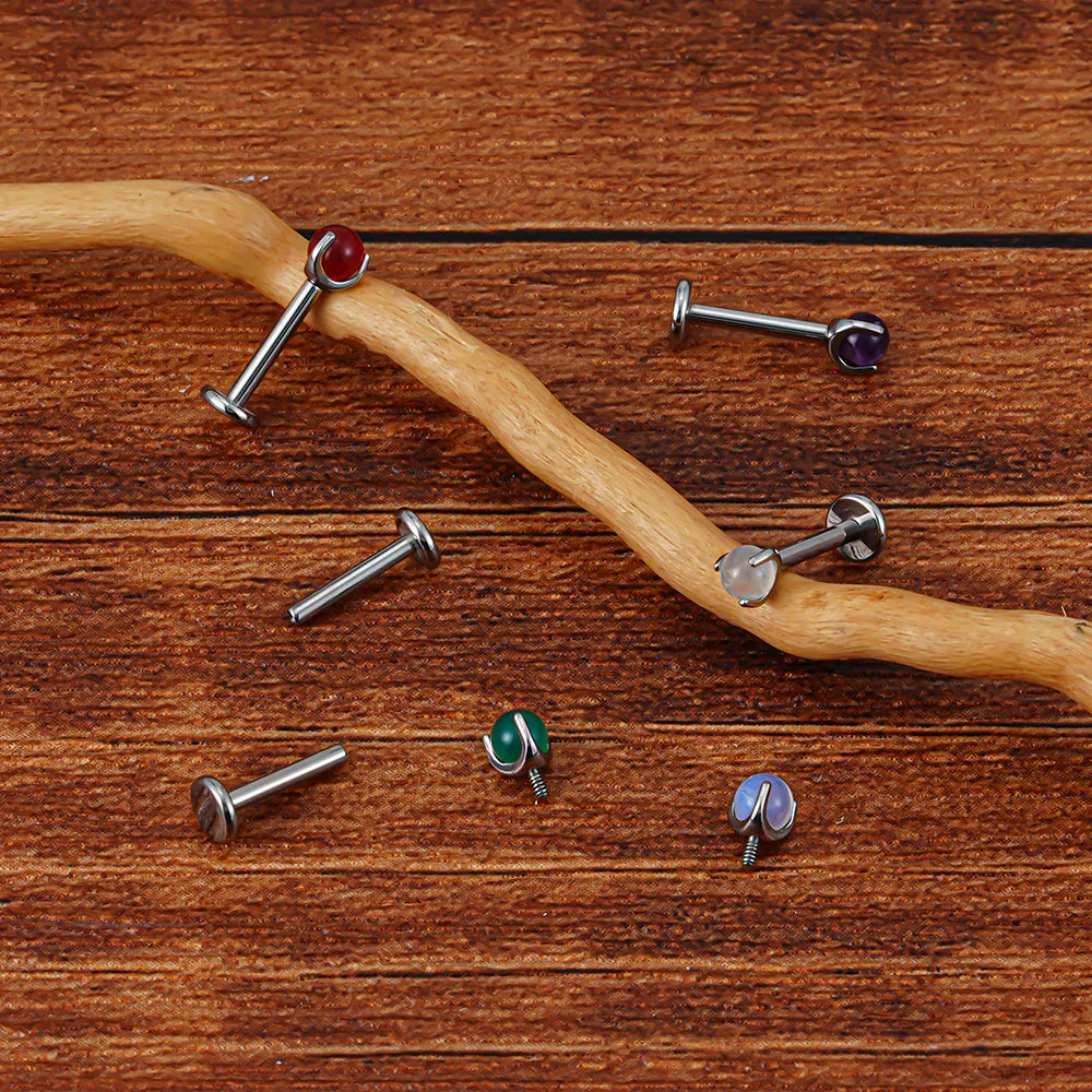 Tiny medusa piercing with natural semi-precious gemstones titanium lip stud nose stud ear stud